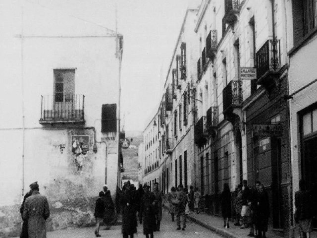 Cruzando de nuevo de acera y dejando atrás la boca-calle de Obispo Barragán, topamos con un inmueble también propiedad de la familia Barranco y en cuyo portal está el despacho de pan y repostería de “María la panadera” -esposa del antes mencionado, señor Cuellar-. A continuación la “Única”. En este comercio, podías comprar, todos los cuentos, tebeos y revistas de la época, además de colonia en frascos o a granel, brillantina, tan popular entonces, tiras bordadas, trompos y chichimonas, mixtos cachondos y un sinfín de géneros que parecía imposible en un local tan pequeño. A continuación y con el número 27, la tienda de comestible de Emilio García, casado con Ramona Herrera y padres de Emilio, Ramón, Alejandro y Casiano. Casiano es otro buen pelotero que juega en el Abila. En el portal con el mismo número, también reside una familia de judíos muy apreciados en el barrio, especialmente un hijo de la señora llamada Achy, conocido en la calle como Benhamú. Se ha hecho famoso, porque siempre está paseando por la calle, con un montón de papeles bajo el brazo. A continuación, un taller donde se fabrican somieres, que años antes, era la tienda de muebles “Herrera”. Cruzando la calle Sagasta, que nos llevaría a casa Vicente “el valenciano” y al “Estrecho”, topamos con un gran portal y con la tienda de comestible de María Lladó, tía de Remedio Vallejo que vive con ella.