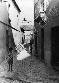 Seguimos adelante y de nuevo se ensancha la calle. A la izquierda se halla un solar que al parecer fue una sastrería. Esta fue destruida por una bomba, de la maldita guerra. En un pequeño habitáculo, se halla una churrería de la señora María. En mi casa, éramos cliente de esta señora, de la que mi padre dice, hace los mejores churros de Ceuta. Esta señora, está casada con un señor que posee un taxi en la parada del Cervantes. Le sigue un portal, donde no conozco a nadie y en los bajos una tienda de tejido, con lo que finaliza la calle.